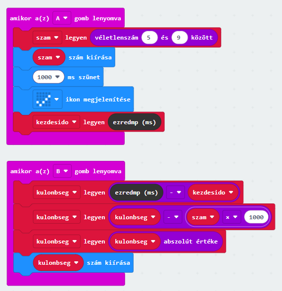 - A játék lényege: B gombot annyi másodperc után kell megnyomni, amekkora számot láttunk korábban.